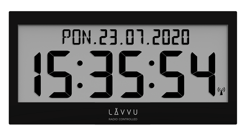 Černé digitální hodiny s češtinou LAVVU MODIG řízené rádiovým signálem LCX0011