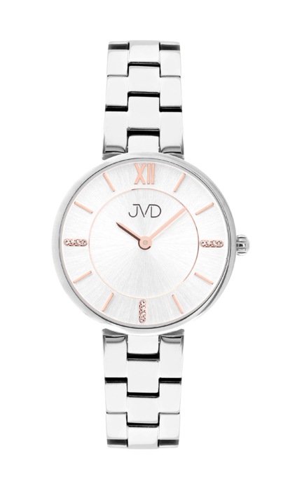 Design dámských hodinek JVD je překvapivě důmyslný. Chladná nerezová ocel, rafinované pozadí, ladné proporce a zajímavé detaily dávají najevo, že jako majitelka takových hodinek nebudete lehce k mání a rozhodně víte, co chcete.