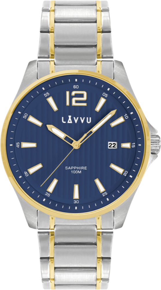 - LAVVU Pánské zlacené hodinky se safírovým sklem LAVVU NORDKAPP Bicolor Blue LWM0166