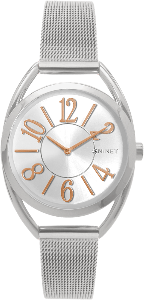 Stříbrné dámské hodinky s čísly MINET ICON SILVER MESH MWL5086