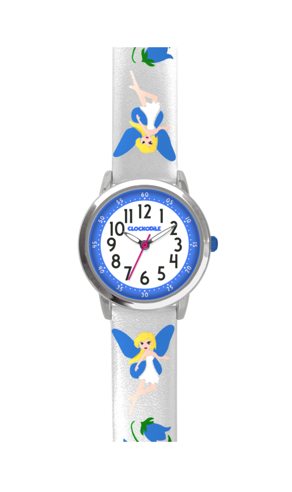 Stříbrné třpytivé dívčí hodinky s modrými vílami CLOCKODILE FAIRIES CWG5083