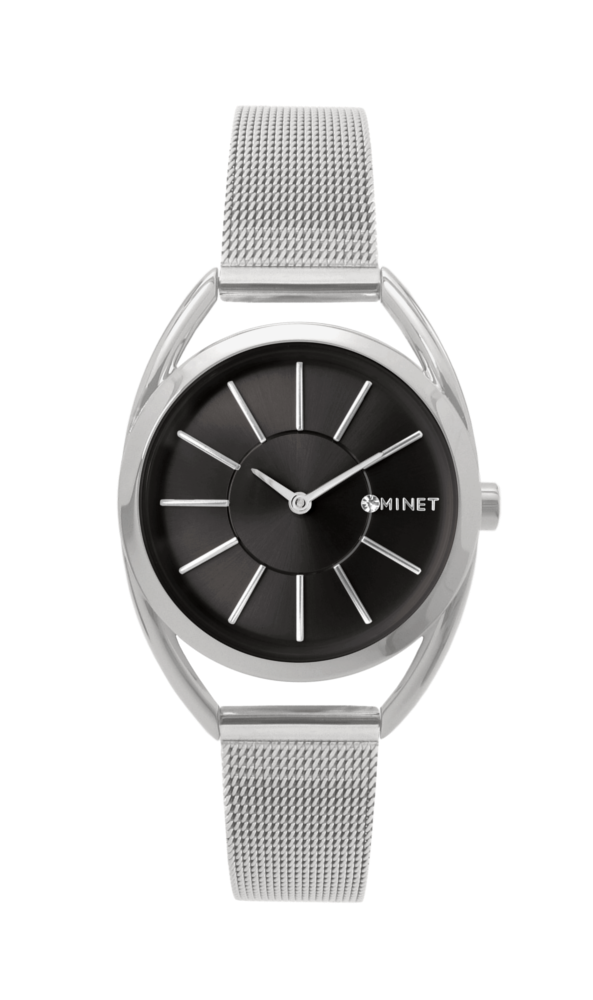 - Stříbrno-černé dámské hodinky MINET ICON SILVER BLACK MESH MWL5017
