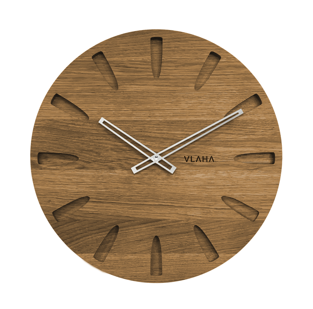 Vůně dubového dřeva a přírodních olejů se rozlije ve Vašem bytě, jakmile na stěnu pověsíte nové dřevěné hodiny VLAHA.