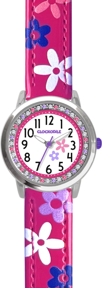 - CLOCKODILE Náramkové růžové dívčí dětské hodinky s kamínky a kytičkami CWG5203