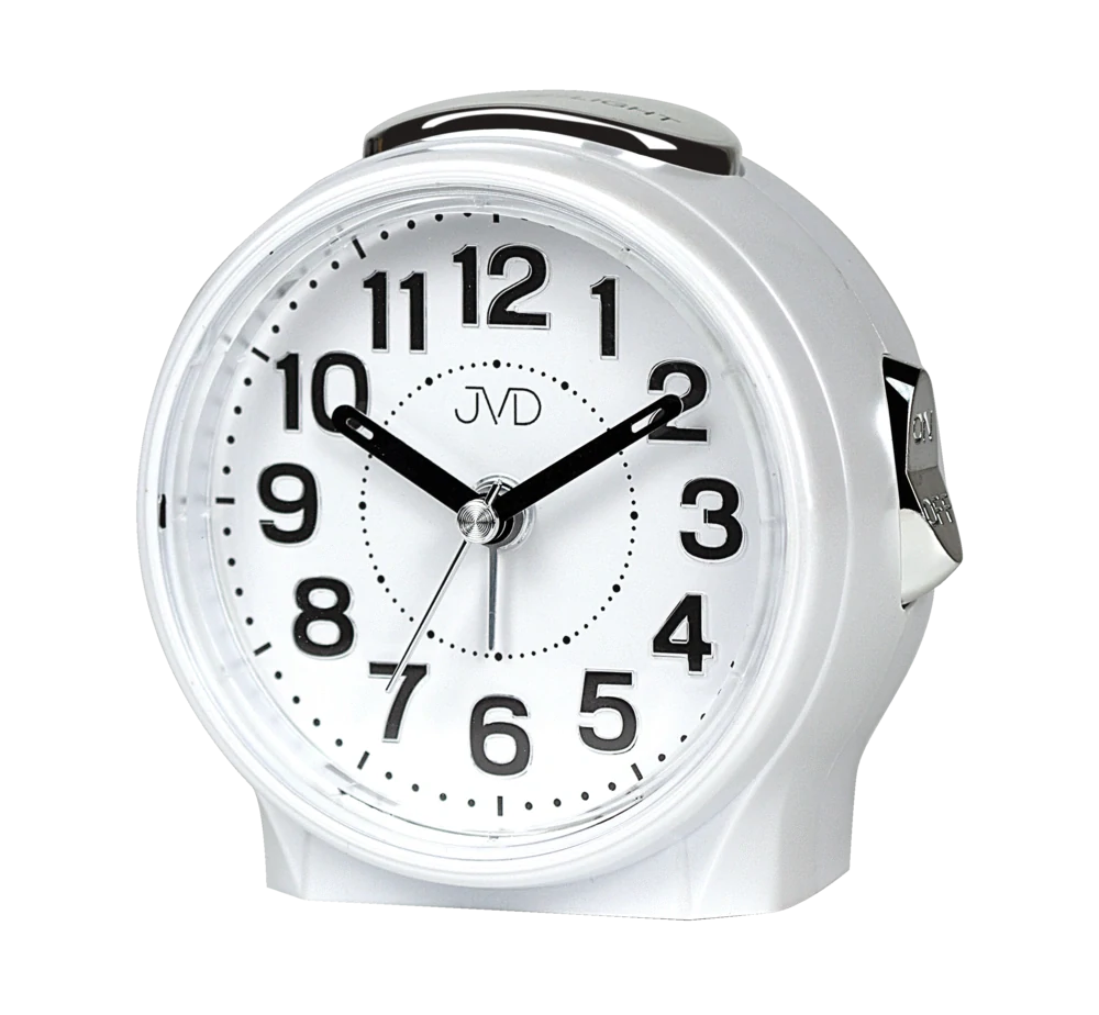 Tento budík JVD hned na první pohled upoutá především svým jednoduchým a moderním designem, ale také praktickými rozměry.