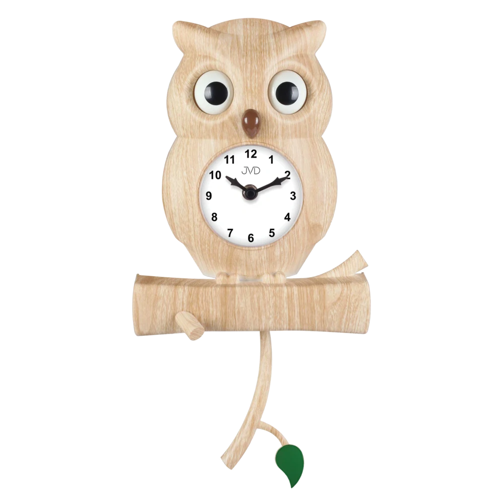 JVD Dětské hnědé tiché netikající hodiny s motivem sovy JVD HE21.4 v imitaci dřeva