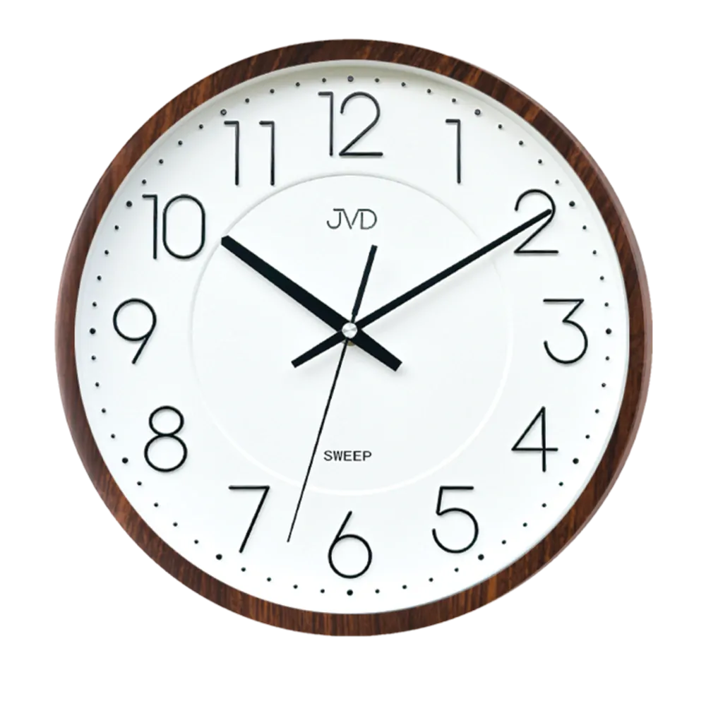 JVD Nástěnné tiché netikající hodiny JVD HX2495.3 v imitaci dřeva