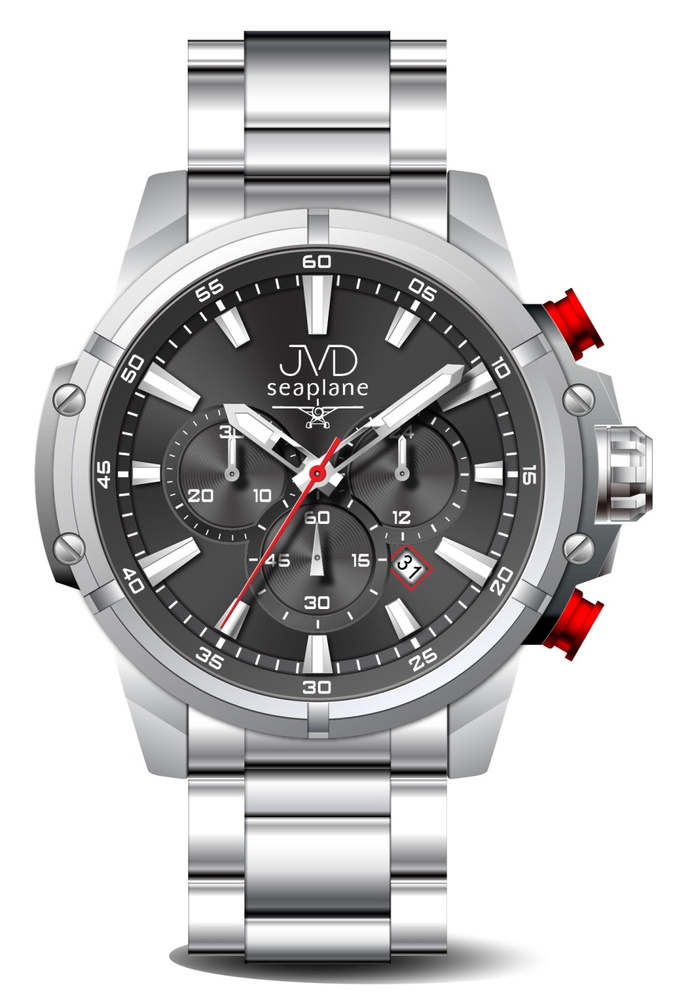 Letošní novinky JVD Seaplane znovu nabízejí řadu vlastností, díky kterým se na jejich funkčnost můžete vždy spolehnout. Jsou sice určeny primárně pro milovníky sportu, ale díky ocelovému provedení se dají zařadadit také do designové kategorie. Hodinkám dominuje robustní ocelové pouzdro, v němž je umístěn číselník s chronografy, ukazatelem data a luminiscenčními prvky, díky kterým je ciferník dobře viditelný i ve tmě. Pohon potom zajištťuje spolehlivý strojek Miyota JS25. Tyto čtyři barevné varianty kombinují nejpopulárnější odstíny kovu, u některých doplněné výrazným prvkem červené nebo modré.
