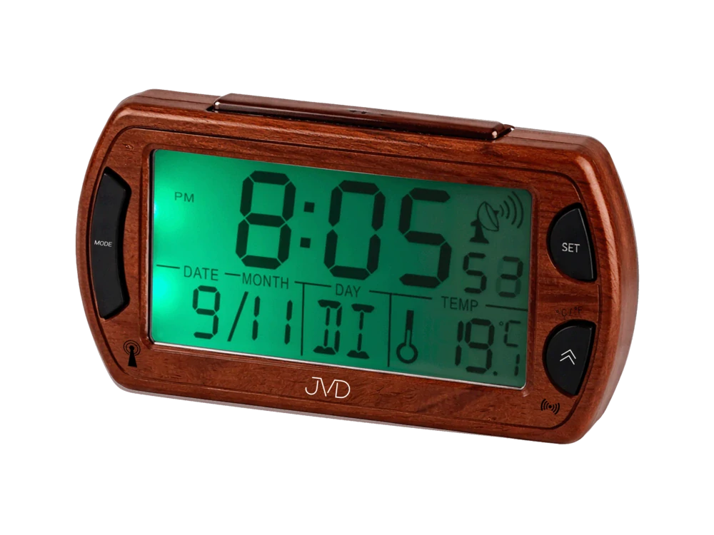 Pomocí tohoto budíku značky JVD budete znát nejpřesnější čas na kontinentu. Přijímá totiž časový signál z Frankfurtu, jehož možná odchylka je menší než 1 sekunda za 2 miliony let!