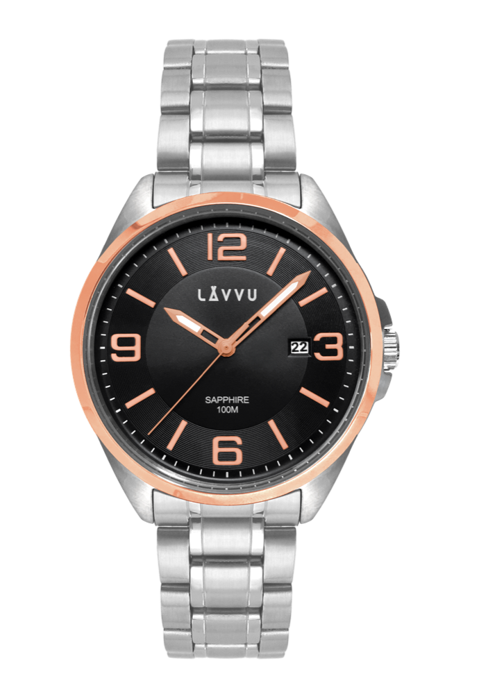 LAVVU Pánské náramkové hodinky se safírovým sklem HERNING Rose Gold LWM0096