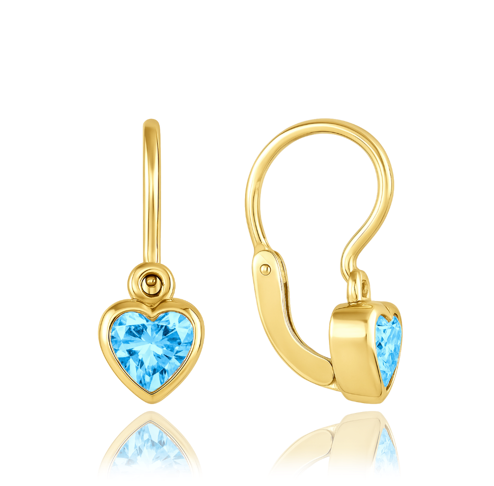 MINET Dětské náušnice s předním zapínáním srdíčka s modrými zirkony Au 585/1000 1,25g JMG0237AGE01