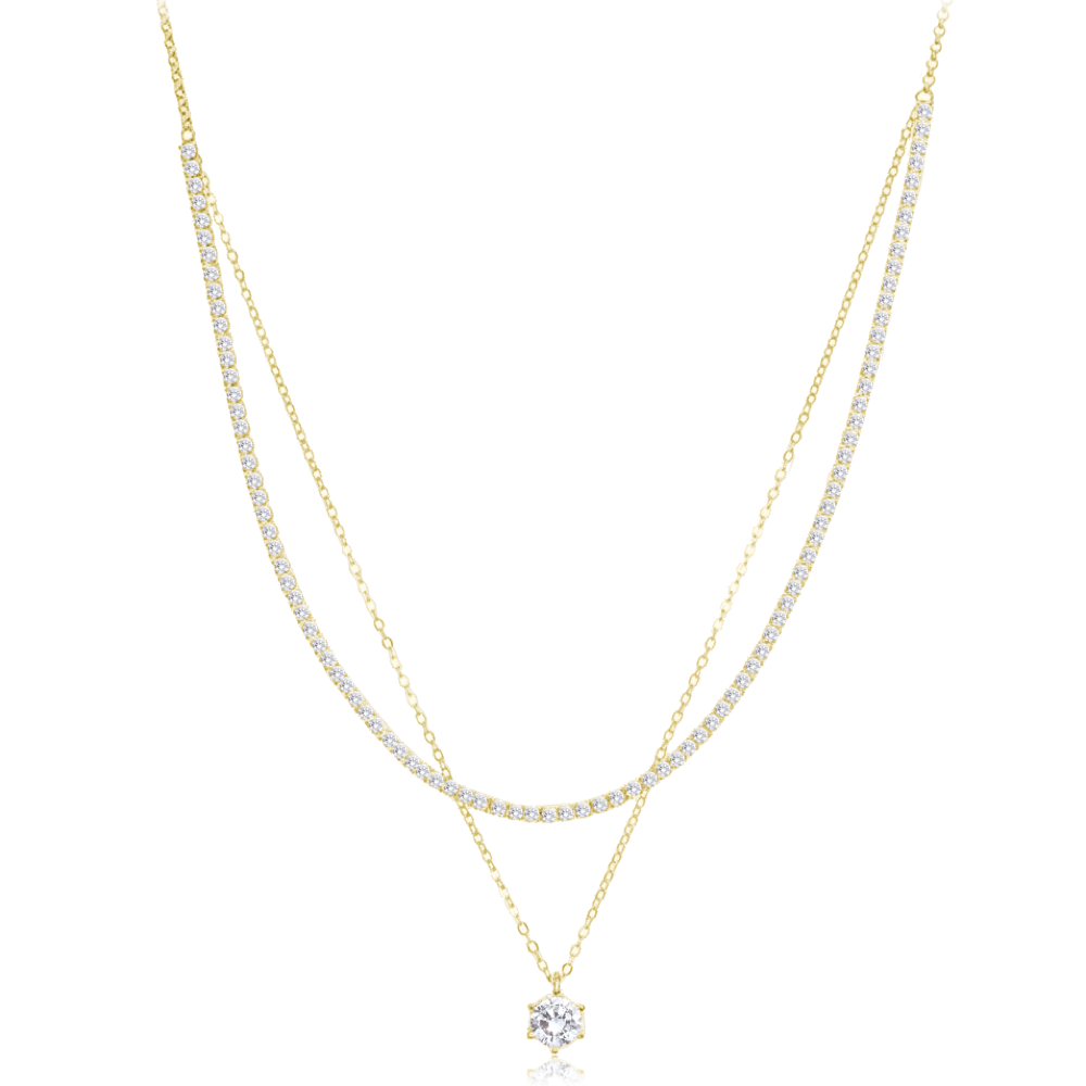 MINET Elegantní dvojitý pozlacený stříbrný náhrdelník s bílým zirkonemSkladem2 919 Kč/ ks