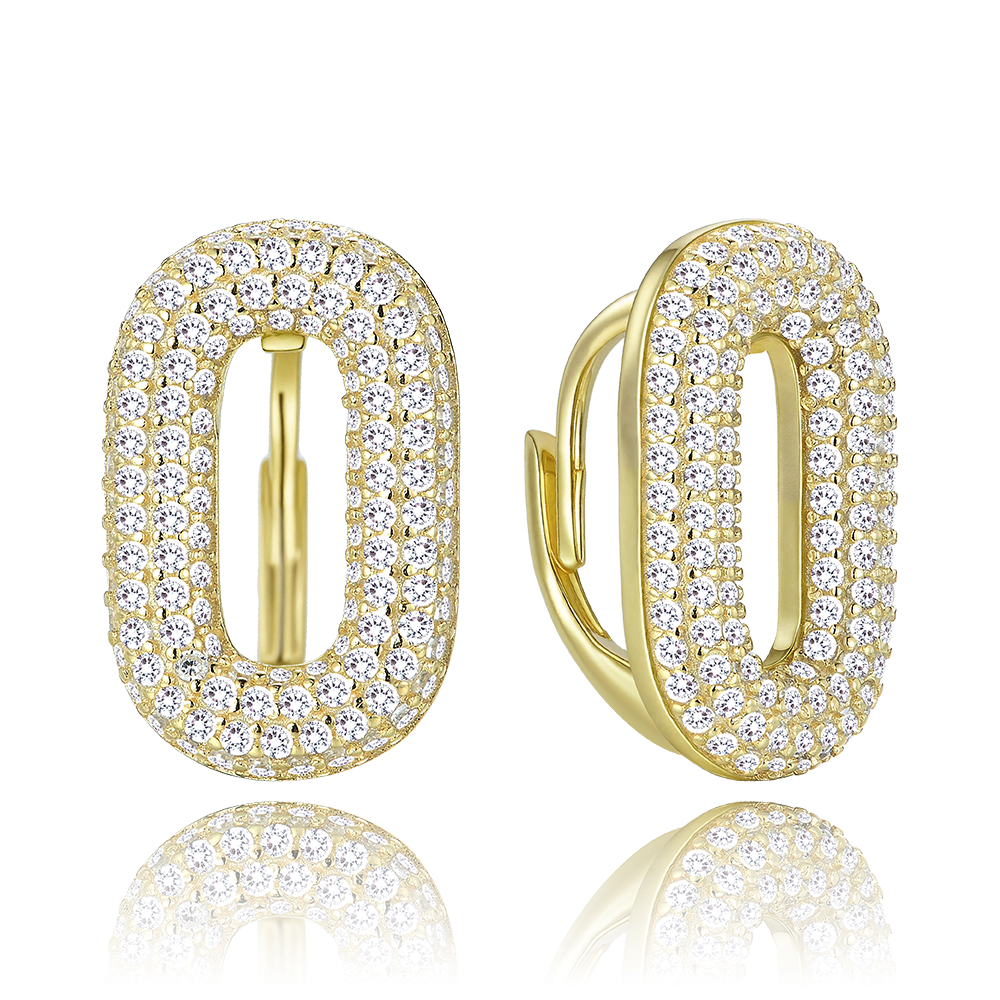 MINET Luxusní pozlacené stříbrné náušnice s bílými zirkony JMAS0290GE00
