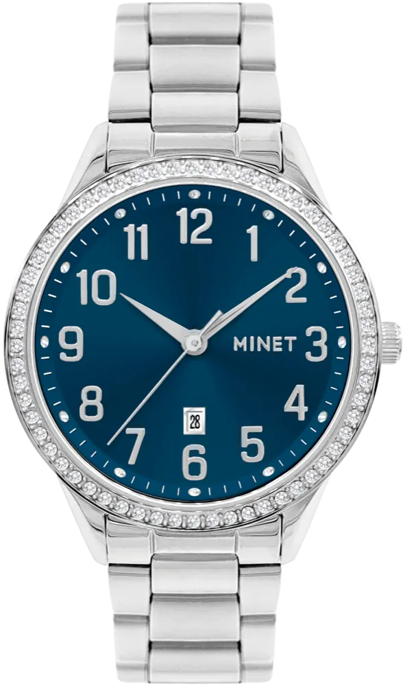 - MINET Náramkové stříbrno-modré dámské hodinky Avenue s čísly MWL5314