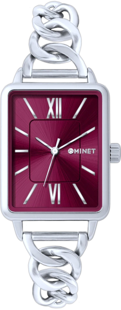 - MINET Náramkové stříbrno-vínové dámské hodinky SIENA se stříbrným ocelovým řemínkem MWL5402