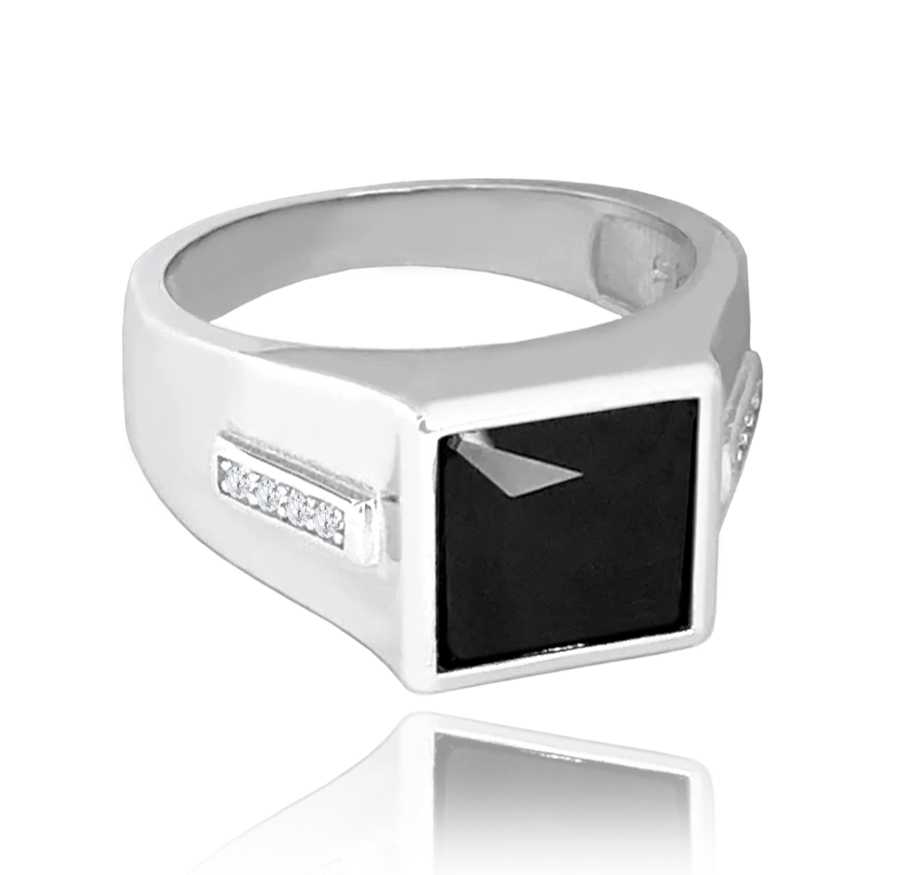 MINET Pánský pečetní stříbrný prsten s černým zirkonem vel. 70 JMAN0380SR70 SKLAD