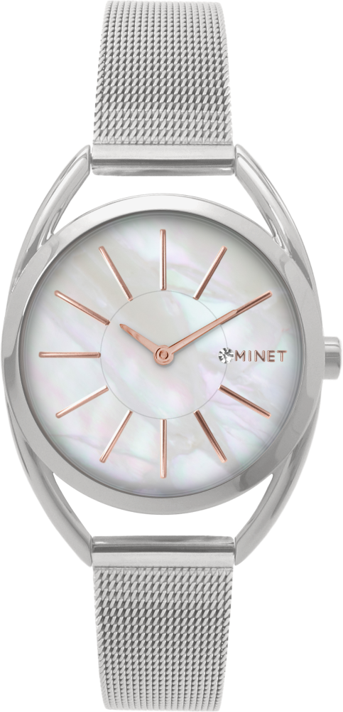 Elegantní hodinky české značky MINET s číselníkem z pravé perleti, moderním ocelovým řemínkem milánského typu a detaily v barvě růžového zlata. Vyměnitelný řemínek se snadným systémem zkracování se přizpůsobí obvodu ruky. Hodinky jsou vyrobeny z hypoalergenní nerezové oceli.