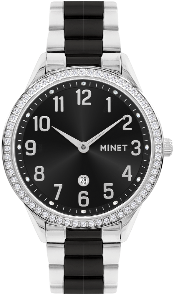 - MINET Stříbrno - černé dámské hodinky AVENUE s čísly MWL5301