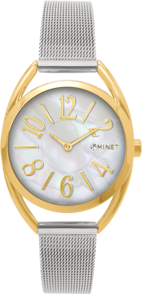 - MINET Stříbrno-zlaté náramkové dámské hodinky s čísly ICON GOLD PEARL MESH MWL5218