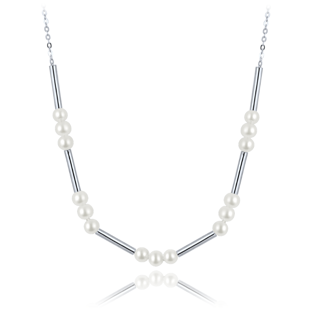 - MINET Stříbrný náhrdelník s přírodními perlami JMAS7059SN42