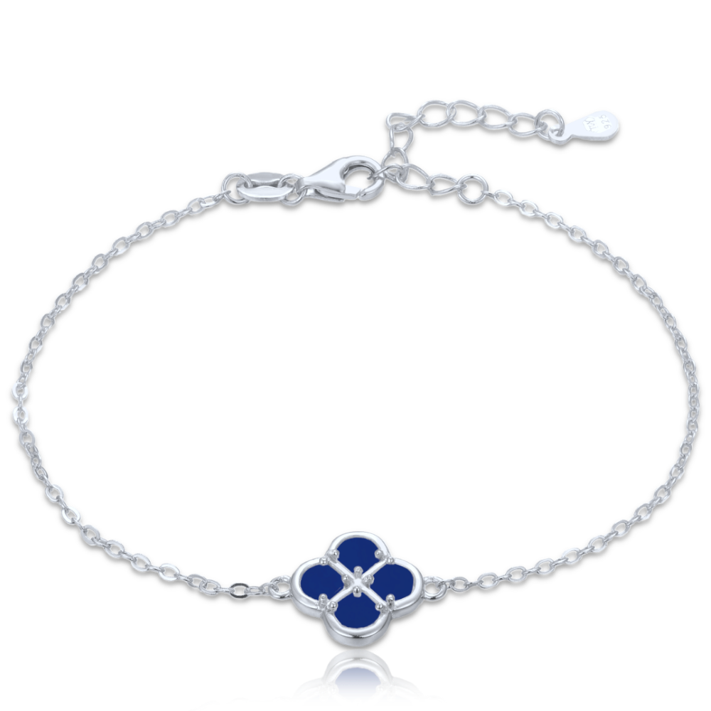 MINET Stříbrný náramek čtyřlístek s lapisem JMAS0306BN45