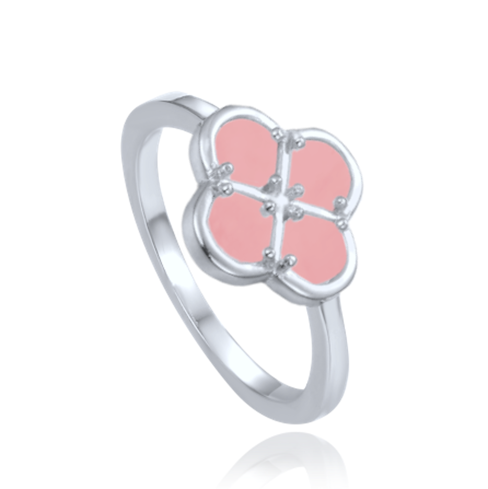 - MINET Stříbrný prsten čtyřlístek s růžovým jadeitem vel. 60 JMAS7058RR60