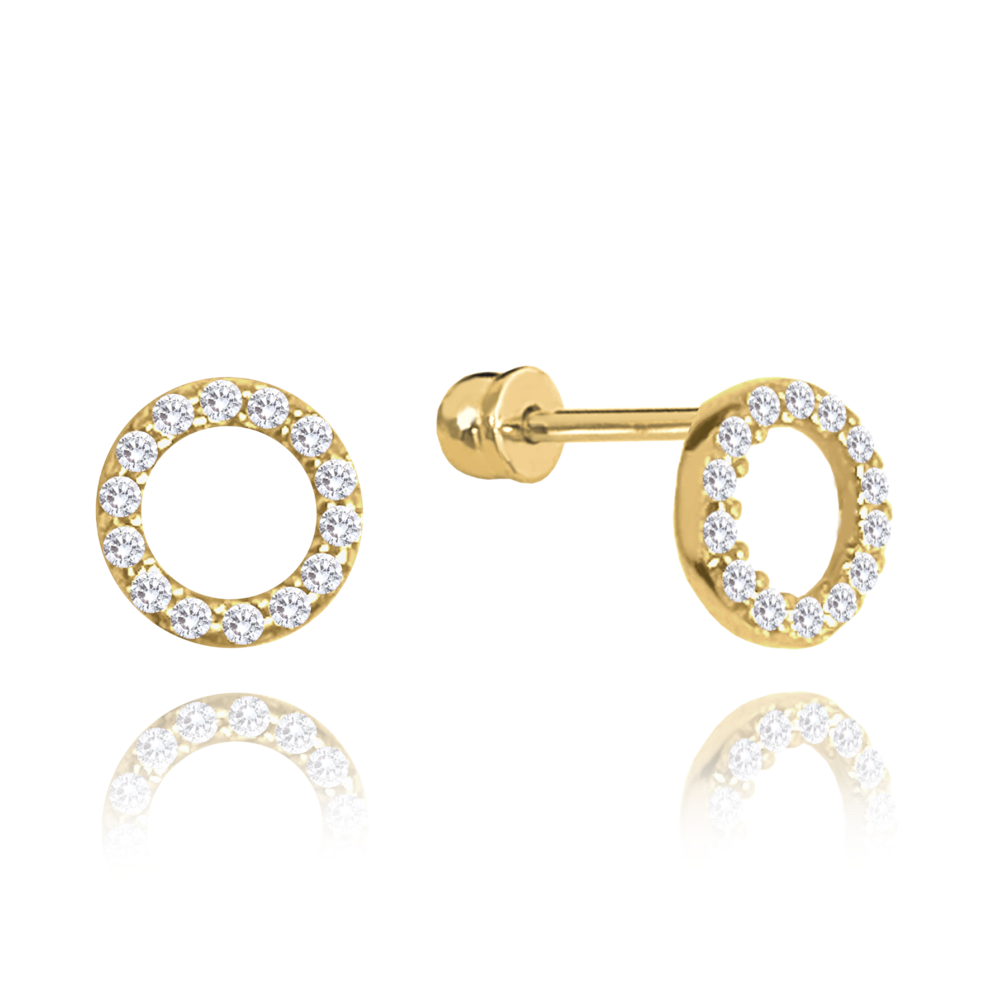 Decentní náušnice z pravého 14karátového zlata. Náušnice jsou zdobené bílými zirkony a jsou vhodné pro každodenní nošení i výjimečné příležitosti. Náušnice mají oblíbené zapínání na šroubek. Kvalitního zpracování si všimnete hned po prvním nošení.