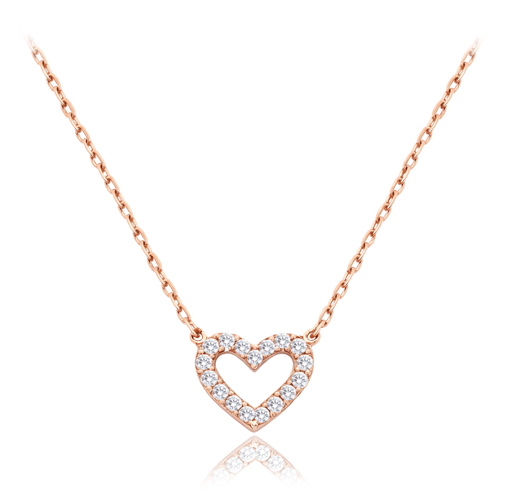 - MINET Zlatý náhrdelník srdce z růžového zlata s bílými zirkony Au 585/1000 1,65g JMG0283WRN43