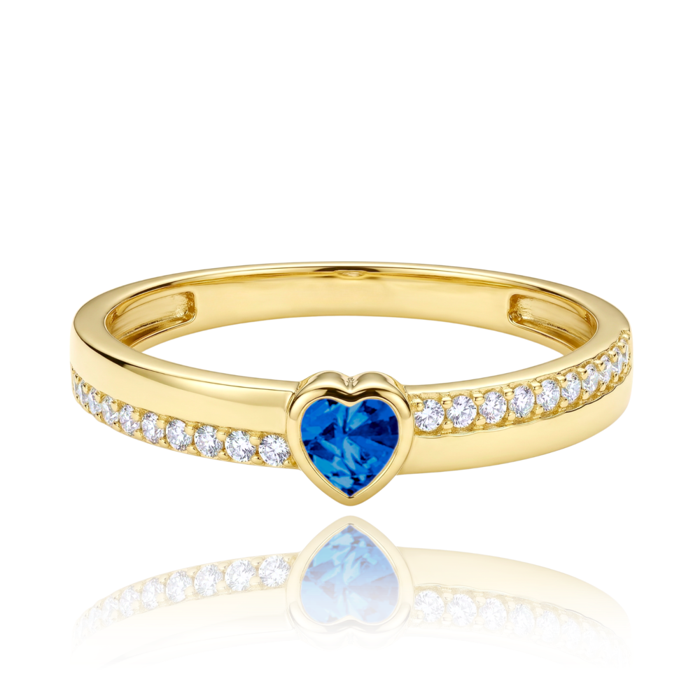 MINET Zlatý prsten srdíčko s modrým a bílým zirkonem Au 585/1000 vel. 54 - 1,30g