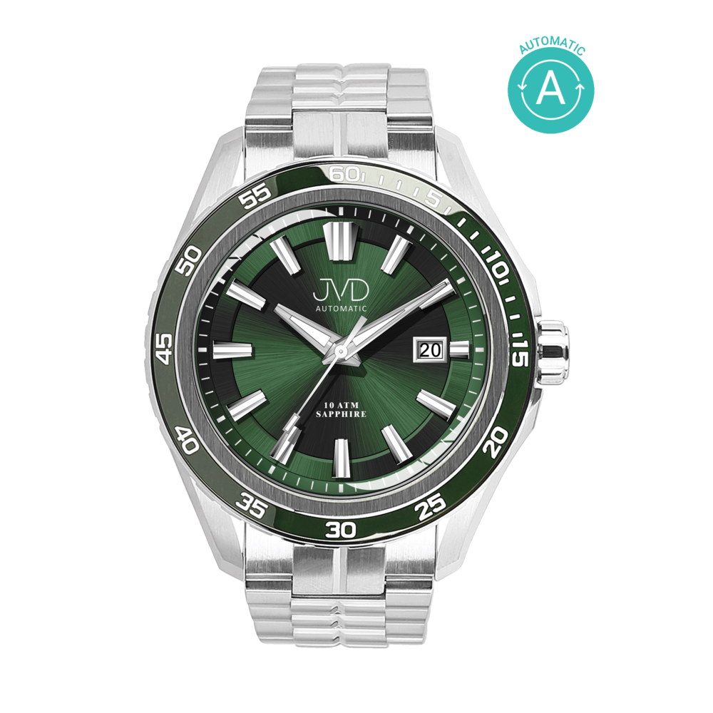 - JVD Pánské ocelové vodotěsné ocelové hodinky AUTOMATY JVD JE1013.3 zelený číselník