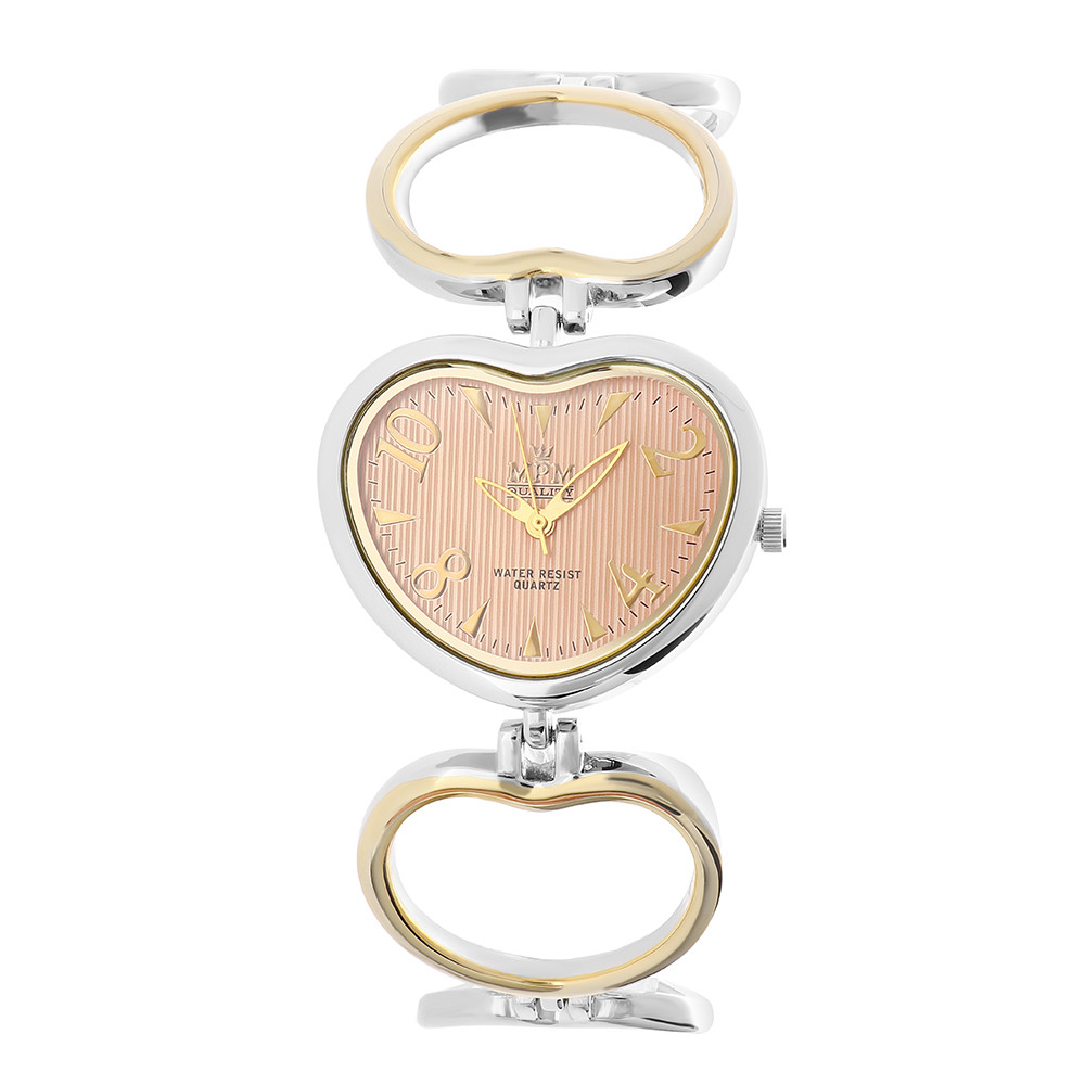 Dámské hodinky ze stříbrné slitiny se srdcovým motivem s rosé ciferníkem a zlatými ručičkami