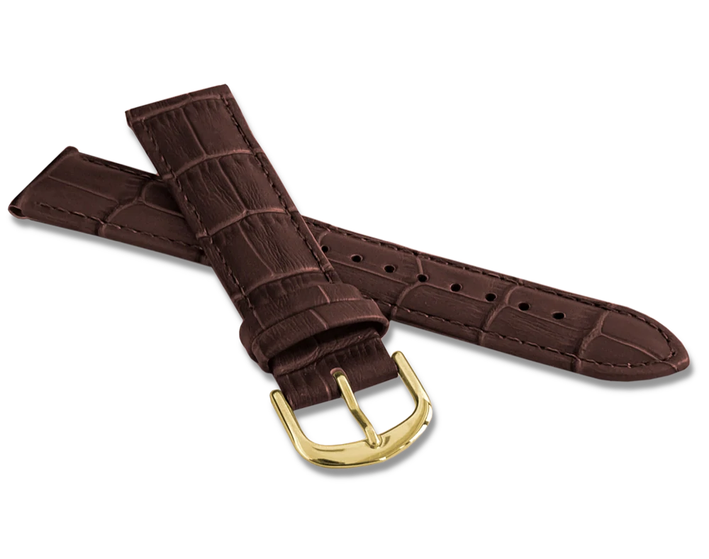 Tmavě hnědý prošitý řemínek CROCO se zlatou sponou - 14 BSIGC14 SKLAD