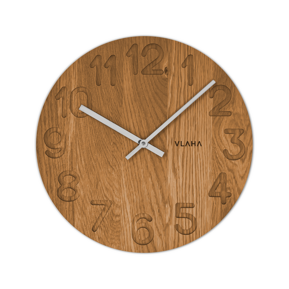 VLAHA Designové dřevěné hodiny OAK vyrobené v Čechách se stříbrnými ručkami ⌀34cm VCT1124
