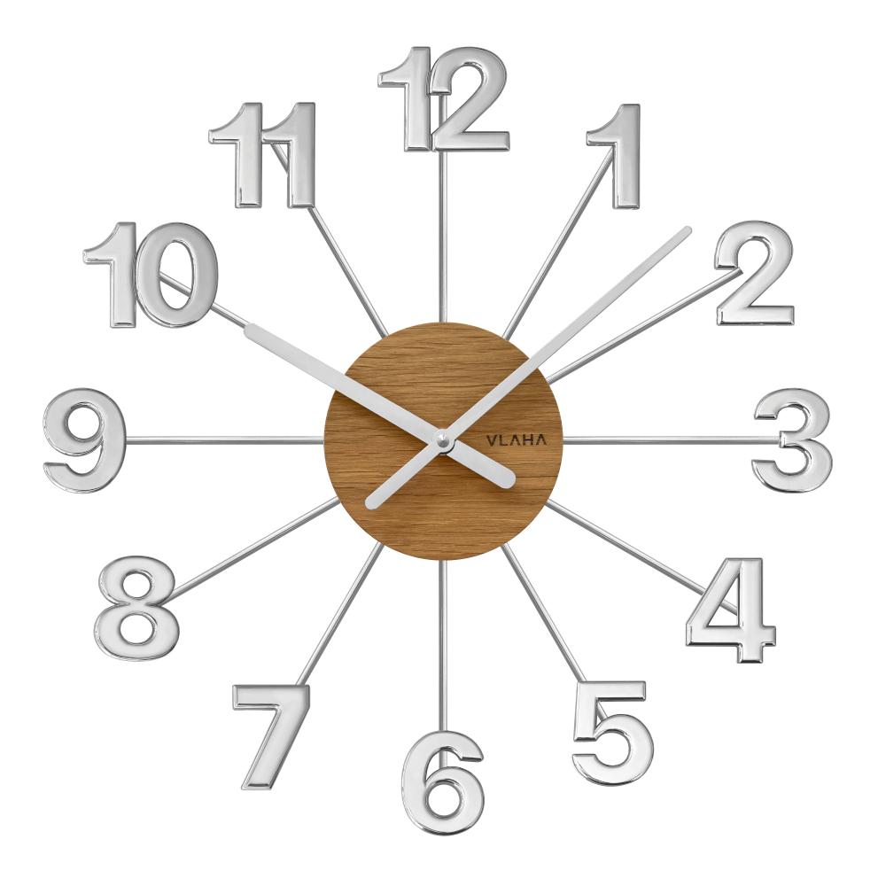 - VLAHA Dřevěné stříbrné dubové hodiny DESIGN vyrobené v Čechách se stříbrnými ručičkami ⌀42cm VCT1076